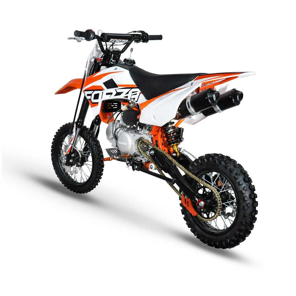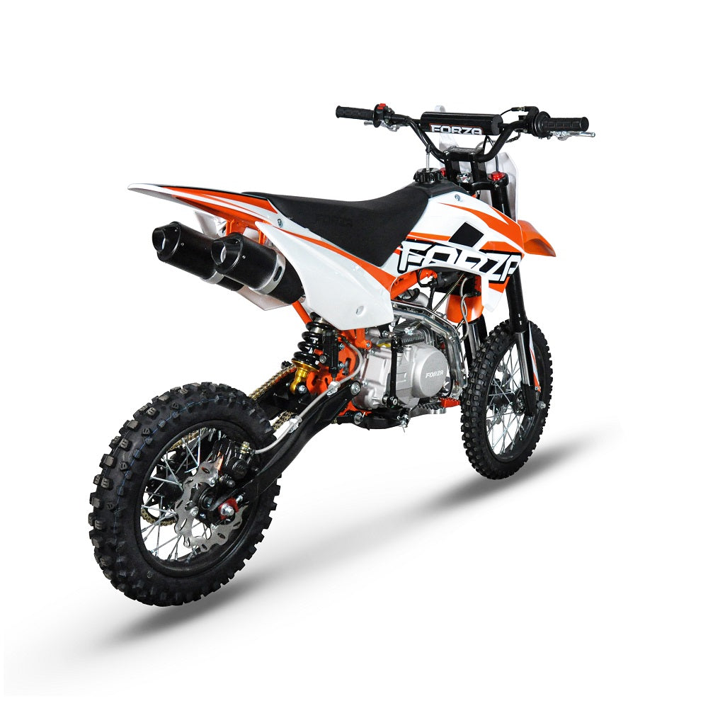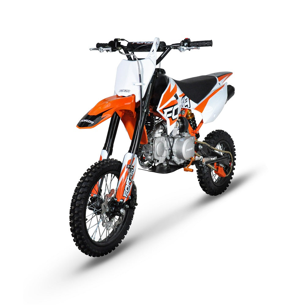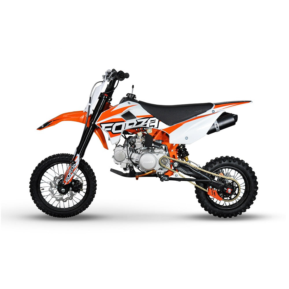 New FMX140R is featuring a FORZA YX140 engine with a factory Z40 racing cam (14hp) + NEW Suspension system (Marzocchi replica non-adjustable fork + FastRace rear shock) + TWIN muffler system!